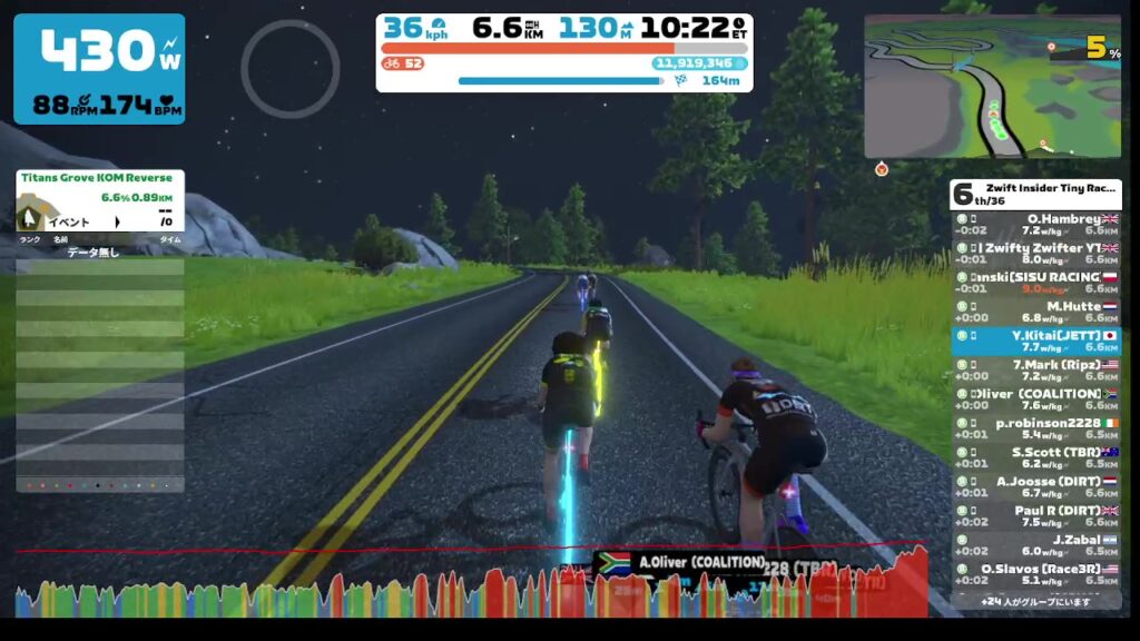 地味に辛いTitan KOM前のアップダウン、やはりここは結構かかります。