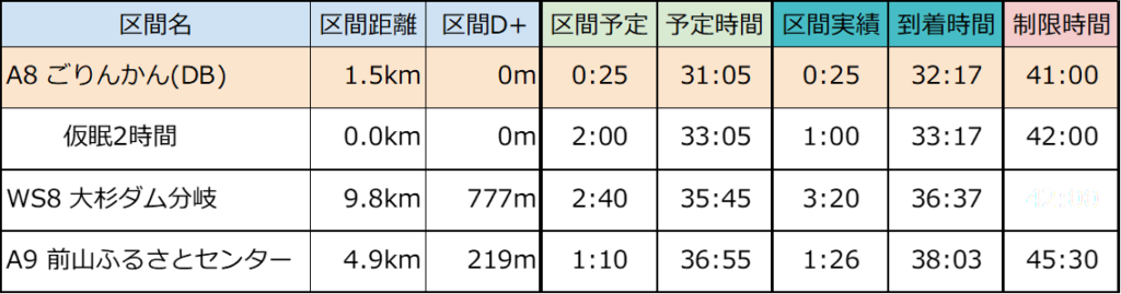 A8 ごりんかんを出たときはまだまだいけると思っていましたが、急に身体が限界を迎えてしまったようで、脚はまだある気もしますが、体幹、内臓がやられ、脳も疲労困憊です。