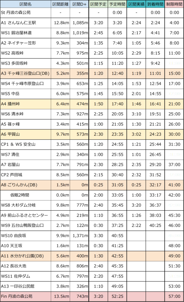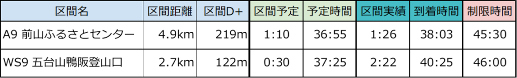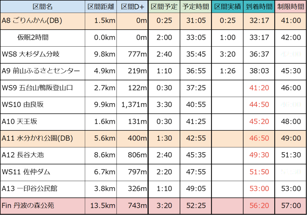 この先、事前に作ったタイムスケジュールの区間予定タイム通りに進めば、まだギリギリ間に合います。