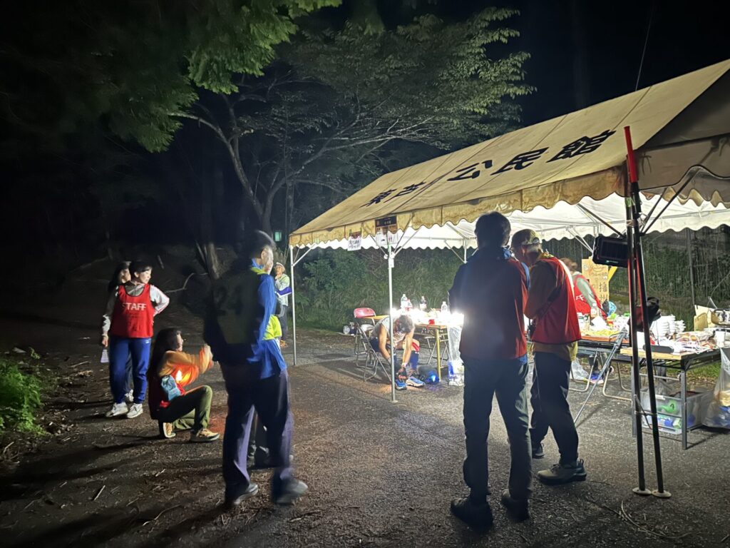 選手はナイトトレイルに突入している一方で、スタッフやボランティアの方々もナイトパートに突入していて、本当に頭が下がります。